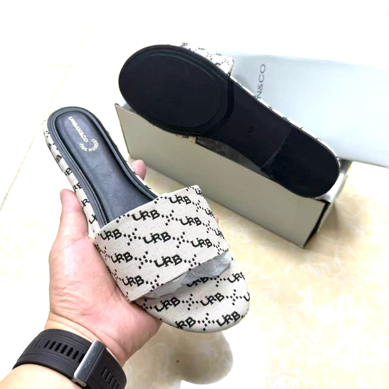- Elegant black and white monogram strap